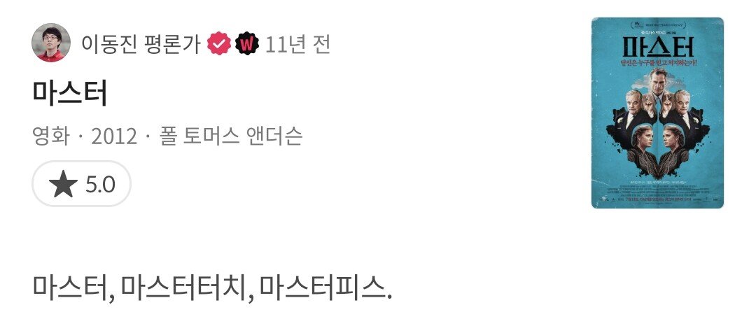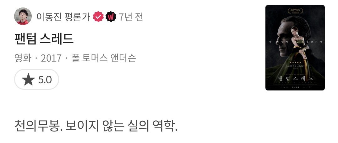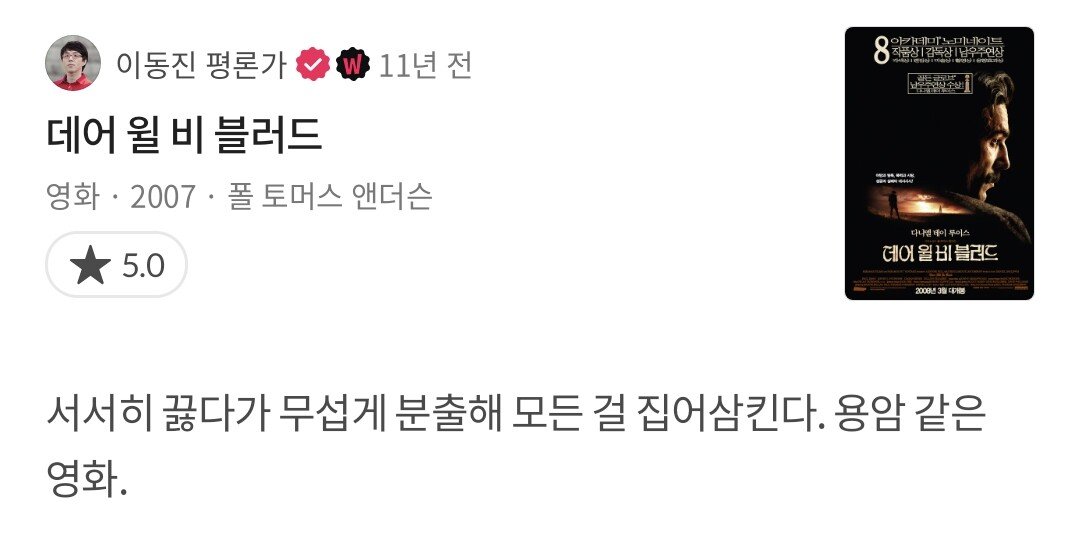 이동진을 네번이나 못 일어나게 한 남자 댓글 0 조회 554 10.02 08:32 작성자 : 대박노 좋아요 팔로우 게시글 보기 매그놀리아 (한줄평 없음) 데어 윌 비 블러드 마스터 팬텀 스레드 PTA의 원 배틀 애프터 어나더 오늘 개봉 대박노님의 최신 글 10.03 채수빈 데뷔하기 전 일반인 시절 모습 10.03 이 얼굴에 몸매까지 죽여주는 설윤 10.02 스타일 파격변신한 예지 근황 10.02 묘한 분위기의 김태리 초딩 사진 10.02 백지헌 가까이서 실제로 보는 느낌 10.02 배우 탕웨이 쌩얼수준 실화냐 10.02 어제자 경성대 축제... 지원 직캠 ㅗㅜㅑ 10.02 어느 정육업자가 고기 핏물을 제거하지 않는 이유 10.02 마선호한테 개발려버린 김종국 10.02 메이크업 받는 폭싹 학씨부인, 마녀 김다미 엄마