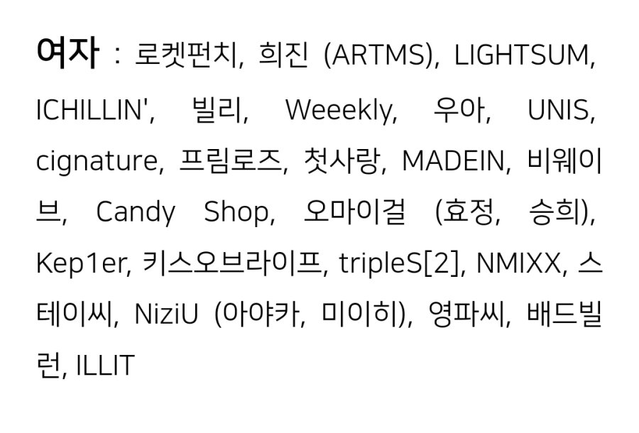 2025 아이돌 선수권 대회 여자팀 출연자 라인업 댓글 0 조회 565 10.01 20:33 작성자 : 갓파 좋아요 팔로우 게시글 보기 갓파님의 최신 글 10.03 채수빈 데뷔하기 전 일반인 시절 모습 10.03 이 얼굴에 몸매까지 죽여주는 설윤 10.02 스타일 파격변신한 예지 근황 10.02 묘한 분위기의 김태리 초딩 사진 10.02 백지헌 가까이서 실제로 보는 느낌 10.02 배우 탕웨이 쌩얼수준 실화냐 10.02 어제자 경성대 축제... 지원 직캠 ㅗㅜㅑ 10.02 어느 정육업자가 고기 핏물을 제거하지 않는 이유 10.02 마선호한테 개발려버린 김종국 10.02 메이크업 받는 폭싹 학씨부인, 마녀 김다미 엄마