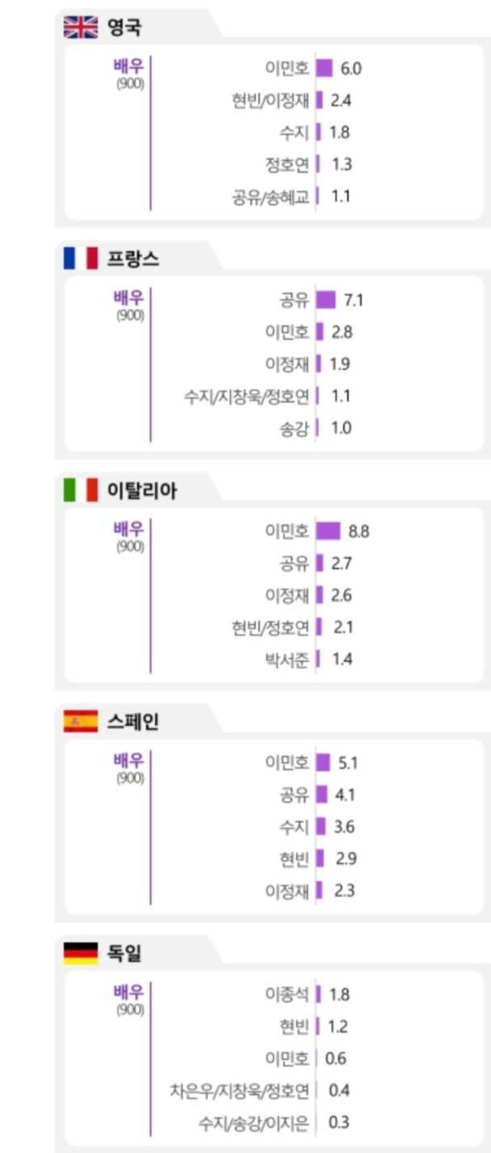 미쳐버린 이민호 전세계 인기 댓글 0 조회 517 11시간전 작성자 : 강승 좋아요 팔로우 게시글 보기 전세계 한류배우 순위 동서양 가리지 않고 이민호가 압도적 1위 ㄷㄷ 배우는 이민호. 가수는 BTS. 강승님의 최신 글 10.04 신예은 : 재밌으려고 한거에요 이거? 10.04 딸 결혼 얘기하는 최현석 셰프 10.04 부천시 "부천역 막장 유튜버·BJ 엄정 대응할 것" 10.04 현 MZ세대를 예언한 신해철 10.04 KBS 추석특선영화 "스즈메의 문단속", "탈주" 편성 취소 10.04 특이점이 온 블랙핑크 리사 인스타스토리 근황 10.04 30대 연애 현실 ㅋㅋㅋㅋㅋ 10.04 배우 봉태규가 혹시 데뷔 전에 양아치였는지 궁금했던 배우 10.04 알파메일 보고 난리난 여고생들 10.04 자동차에 부딪히는 연기를 하는 방법