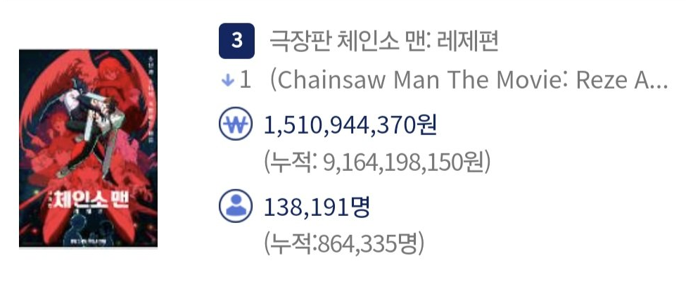6위 <극장판 체인소 맨: 레제편> - 86만+@ (진행중)