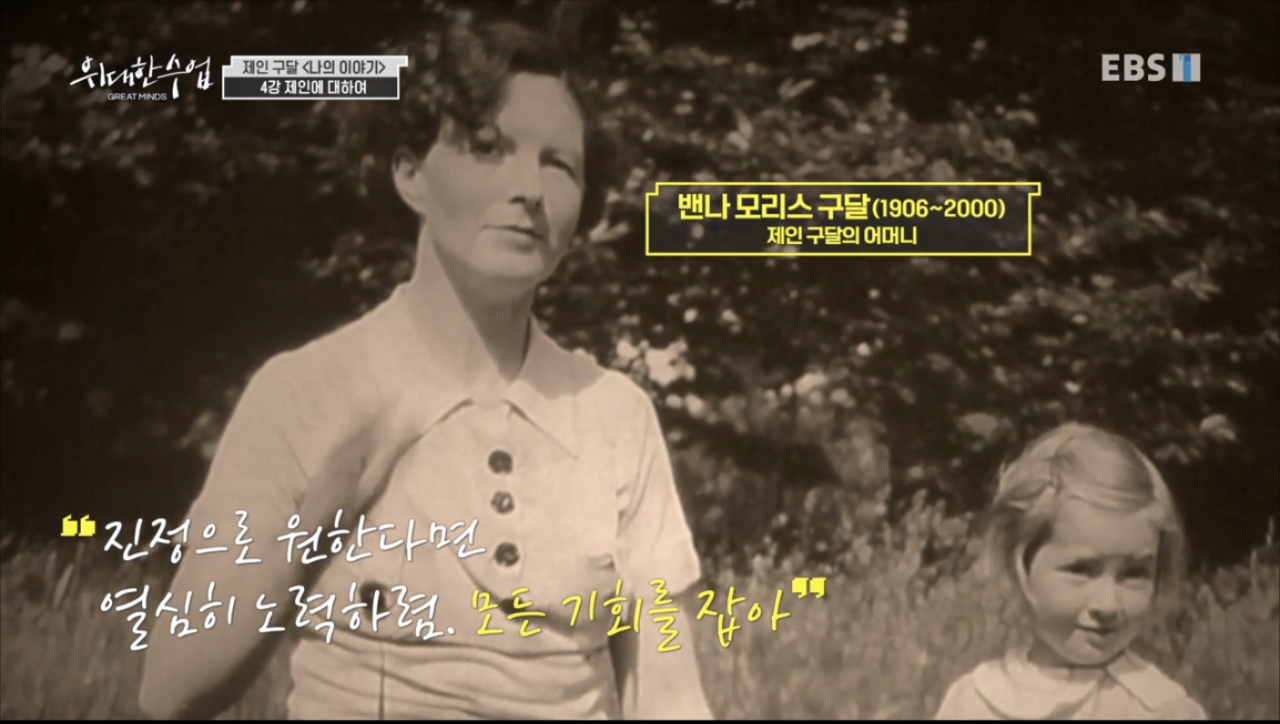 출처: EBS <위대한 수업>, <제인 구달, 나의 이야기> - 4강, 제인에 대하여