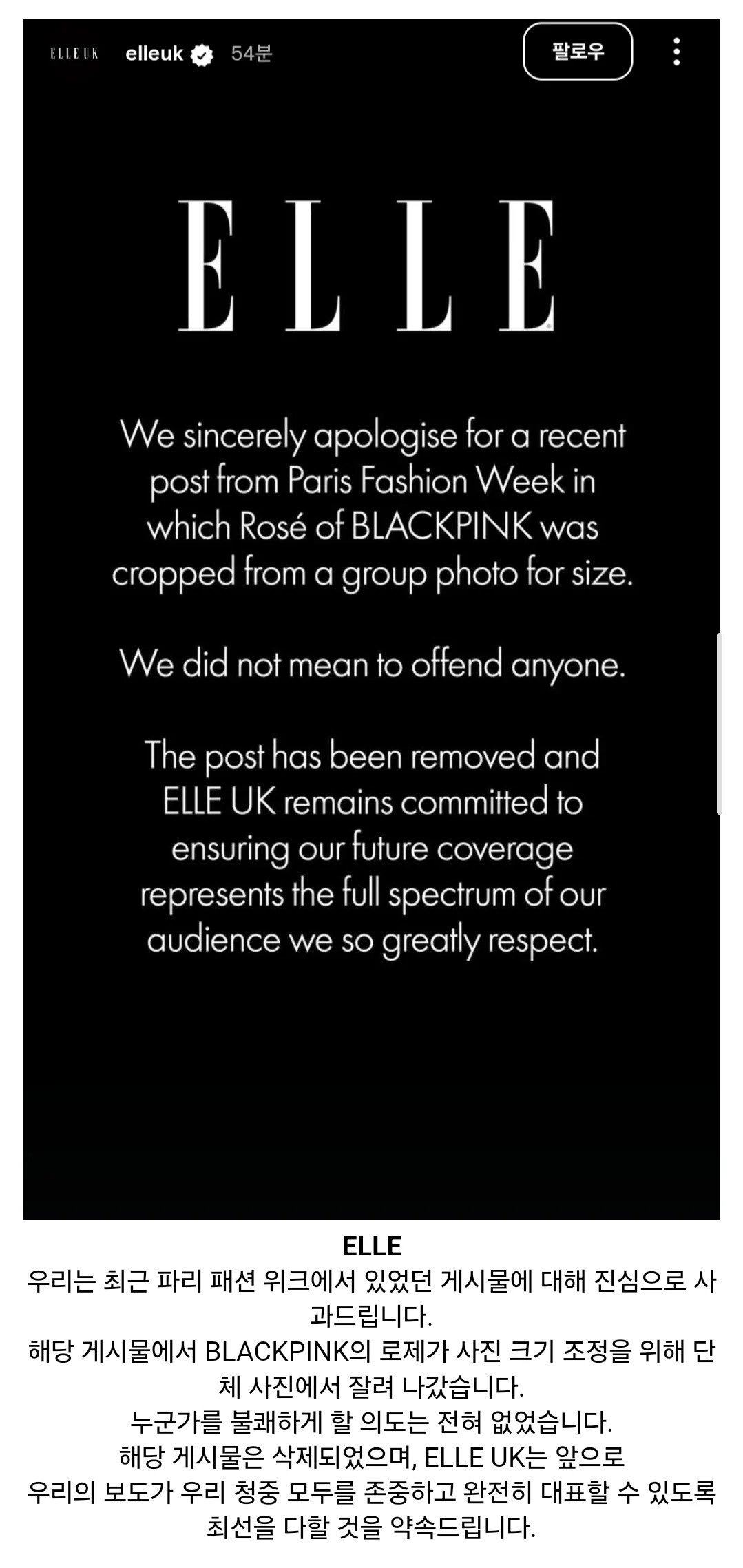 로제 사진만 자른 ELLE UK 변명이 역겨운 이유 댓글 0 조회 576 4시간전 작성자 : 더한마음 좋아요 팔로우 게시글 보기 Elle uk는 사진 크기때문에 어쩔수 없이 자른거다 인종차별 아니다라고 했는데 Elle usa는 안자름 또 여기에 장작을 태우는데 파리 패션 위크 사진 중 블랙핑크 로제 단체 사진 자른거 미안. 불쾌감 줄 의도 없었어. 해당 게시물은 삭제함. 그거슨 오해다로 마무리 더한마음님의 최신 글 10.04 결혼한 최현석 딸 근황 ㅗㅜㅑ 10.04 어린 시절 별명이 찐따였던 이채연을 지켜주던 채령 10.04 냉정하게 결혼 가능성 봐달라는 35살 여성 스펙 10.04 로제 인생 최악의 20분 10.04 오늘자 출국하는 제니 공항패션 10.04 낙오 된 고기 한 덩어리가 불러온 치열한 공방전 10.04 차은우도 외모로 묻힐 수 있다는 걸 보여주는 짤 10.04 블랙핑크랑 협업할때 정신적으로 힘들었다는 카디비 10.04 달려라 하니 팝업 스토어 히트 상품 ㅋㅋㅋ 10.04 대만방송에서 말하는 한국 경제