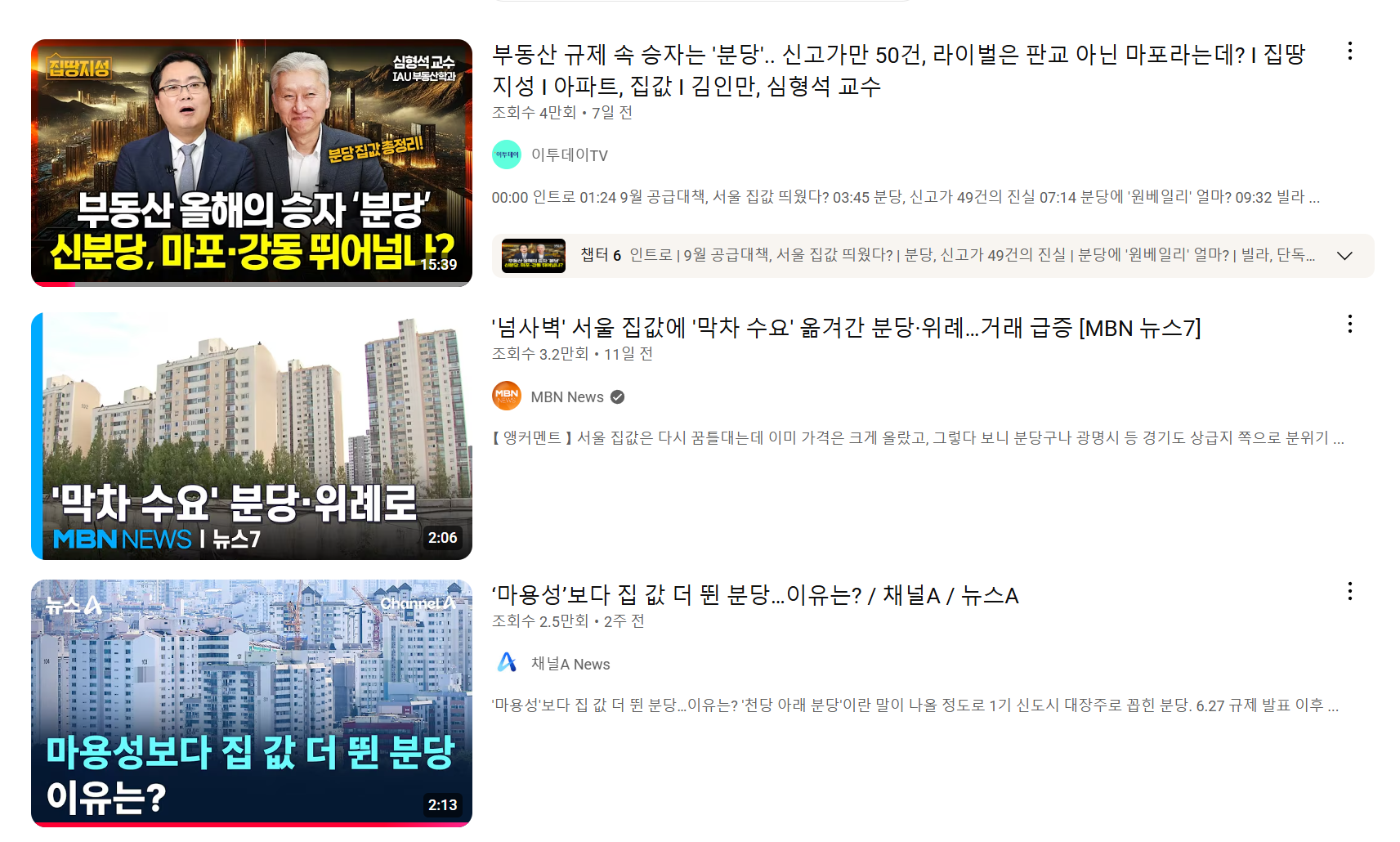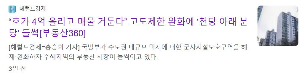 지금 연일 뉴스에서 보도되고 있는 부동산 폭등지역 댓글 0 조회 589 5시간전 작성자 : 강승 좋아요 팔로우 게시글 보기 국가에서 재건축을 밀어주고 있고 국방부가 재빠르게 고도제한도 풀어줘버리자 강남 대출 규제로 막힌 부동산 자금들이 경기도 분당으로 다 몰리고 있는 중 판교도 아닌 분당의 구축아파트들이 20억이 기본이 되어가고 있고 대형평수들은 곧 30억을 넘길려고 하고 있음 대체 부동산의 미래는.... 강승님의 최신 글 10.04 신예은 : 재밌으려고 한거에요 이거? 10.04 딸 결혼 얘기하는 최현석 셰프 10.04 부천시 "부천역 막장 유튜버·BJ 엄정 대응할 것" 10.04 현 MZ세대를 예언한 신해철 10.04 KBS 추석특선영화 "스즈메의 문단속", "탈주" 편성 취소 10.04 특이점이 온 블랙핑크 리사 인스타스토리 근황 10.04 30대 연애 현실 ㅋㅋㅋㅋㅋ 10.04 배우 봉태규가 혹시 데뷔 전에 양아치였는지 궁금했던 배우 10.04 알파메일 보고 난리난 여고생들 10.04 자동차에 부딪히는 연기를 하는 방법