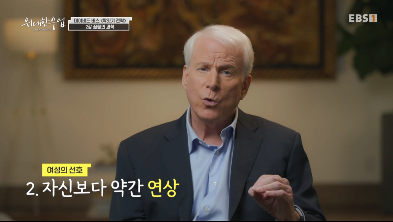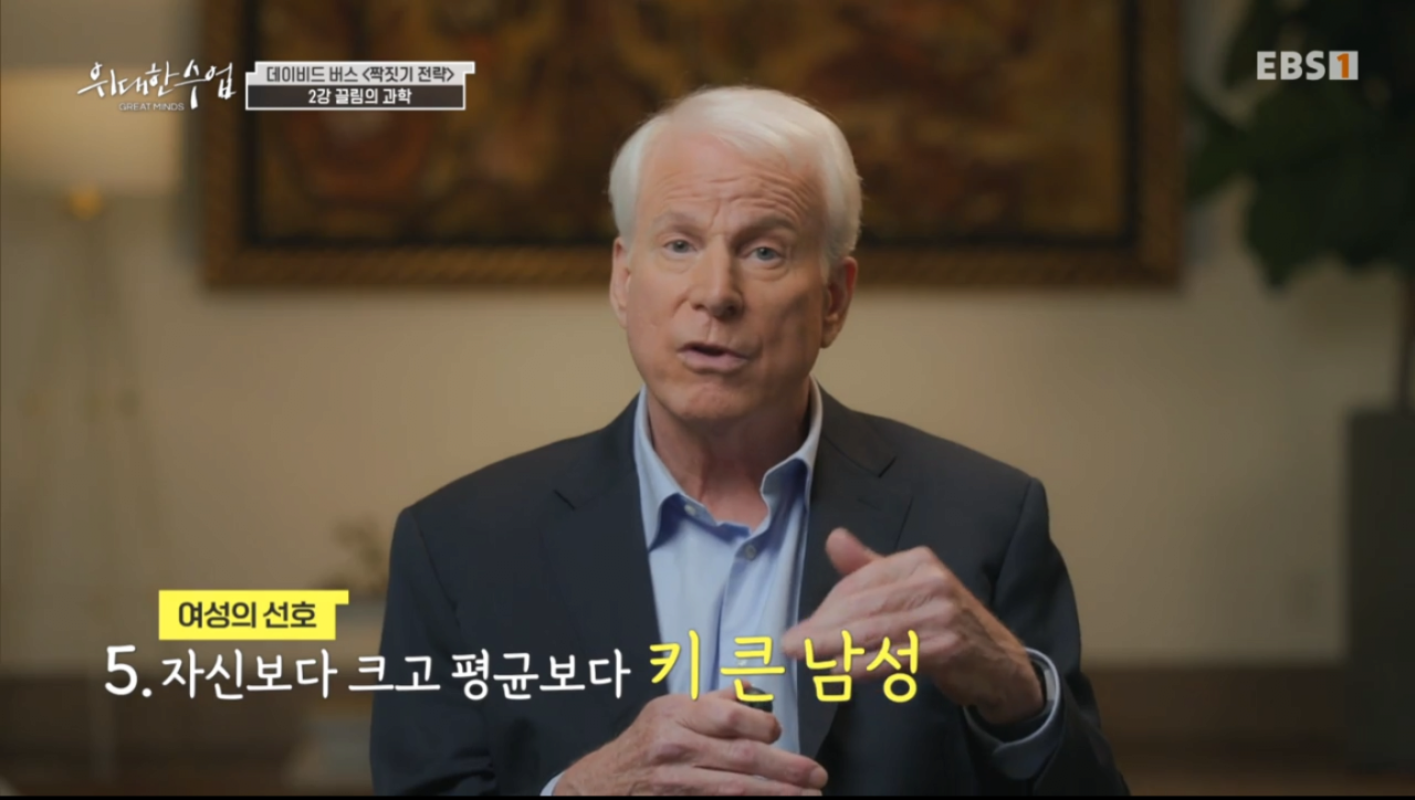 출처: EBS <위대한 수업>, <데이비드 버스, 짝짓기 전략> - 2강, 끌림의 과학