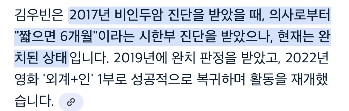 암에 걸려 시한부 진단 6개월 받았는데 다시 돌아온 배우 댓글 0 조회 546 10.04 21:06 작성자 : 대박노 좋아요 팔로우 게시글 보기 긍정의 힘 대박노님의 최신 글 10.04 비혼일수록 집을 장만해야 하는 이유 10.04 암에 걸려 시한부 진단 6개월 받았는데 다시 돌아온 배우 10.04 일본 새총리 닮은 만화 캐릭터 10.04 스포티비 갓경누나 김윤희 아나운서 의상 ㄷㄷ 10.04 베이비시터 고용하지 않는다는 카디비 10.04 일본 새 총리 다카이치 사나에 옛날사진들 10.04 영화 <배트맨 비긴즈> 엔딩 장면 10.04 케데헌 조이 노래 성우 근황 ㅋㅋ 10.04 여자는 어떤 남자에게 끌리는가? 10.04 연예인 싸움 목격담 올타임 레전드