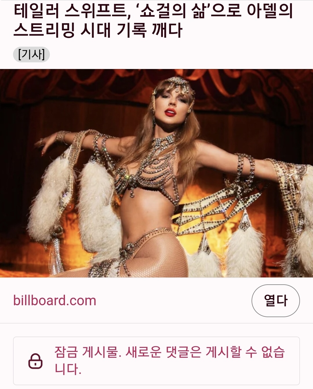 테일러가 아델 초동 기록 깬 후 커뮤 댓글 잠금당한 이유