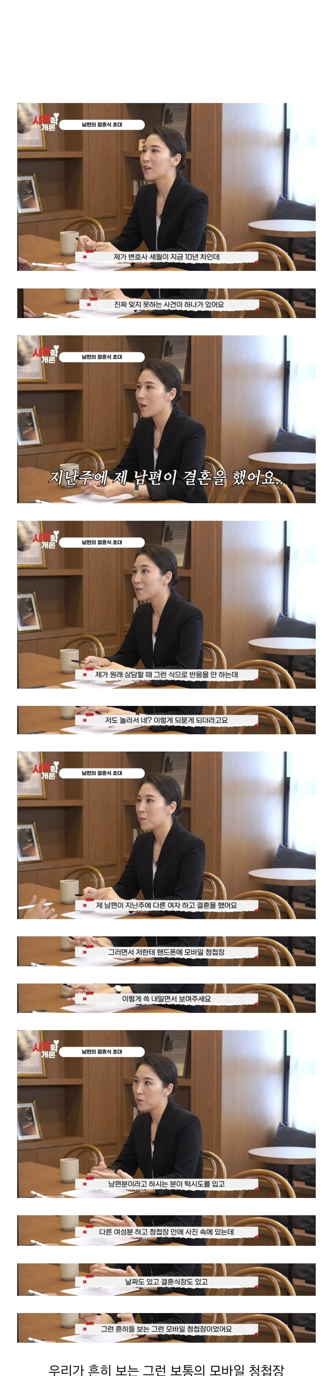 남편이 다음 주에 결혼한다는 모바일 청첩장을 받았어요