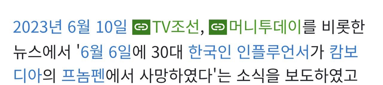 2년 전 캄보디아 방문한 BJ 사망 사건 댓글 0 조회 503 5시간전 작성자 : 더한마음 좋아요 팔로우 게시글 보기 시신발견 지역은 프놈펜이다 프놈펨은 어떤 곳이냐고? 캄보디아는 도대체 어떤 나라일까..... 더한마음님의 최신 글 10.11 신축 아파트가 너무 추웠던 이유 10.11 딘딘 "여긴 제작진도 화폐가치가 개념이 없네?" 10.11 미우새.. 신용등급의 중요성 10.11 해병대 몇기야! 밈을 즐기는 중이라는 로이킴 10.11 요즘 결혼시장에서 남자들이 피한다는 여자 직업 10.11 한국 스크린 골프장에서 골프 치는 가레스 베일 10.11 완전 공감가는 요즘 고객센터 연결 10.11 김광규한테 머리 묶을 줄 아냐고 묻는 엄지원 10.11 너무 늦게 나온거 같은 사이버포뮬러 굿즈 10.11 손흥민이 떠난 후 아스날팬 피터 근황