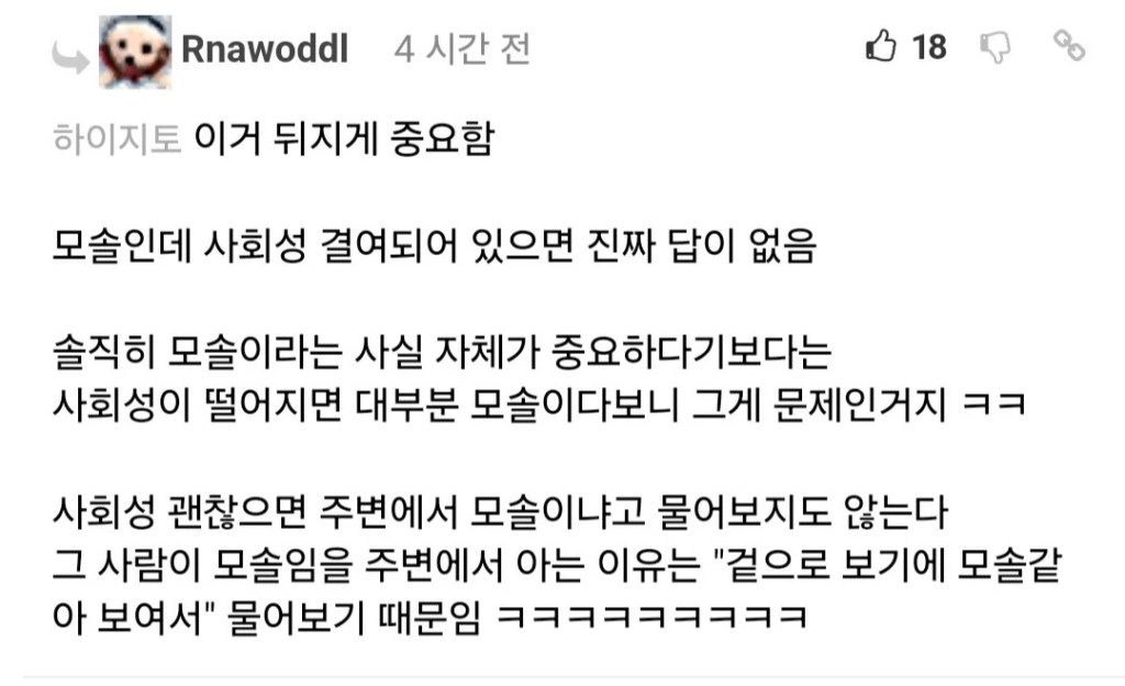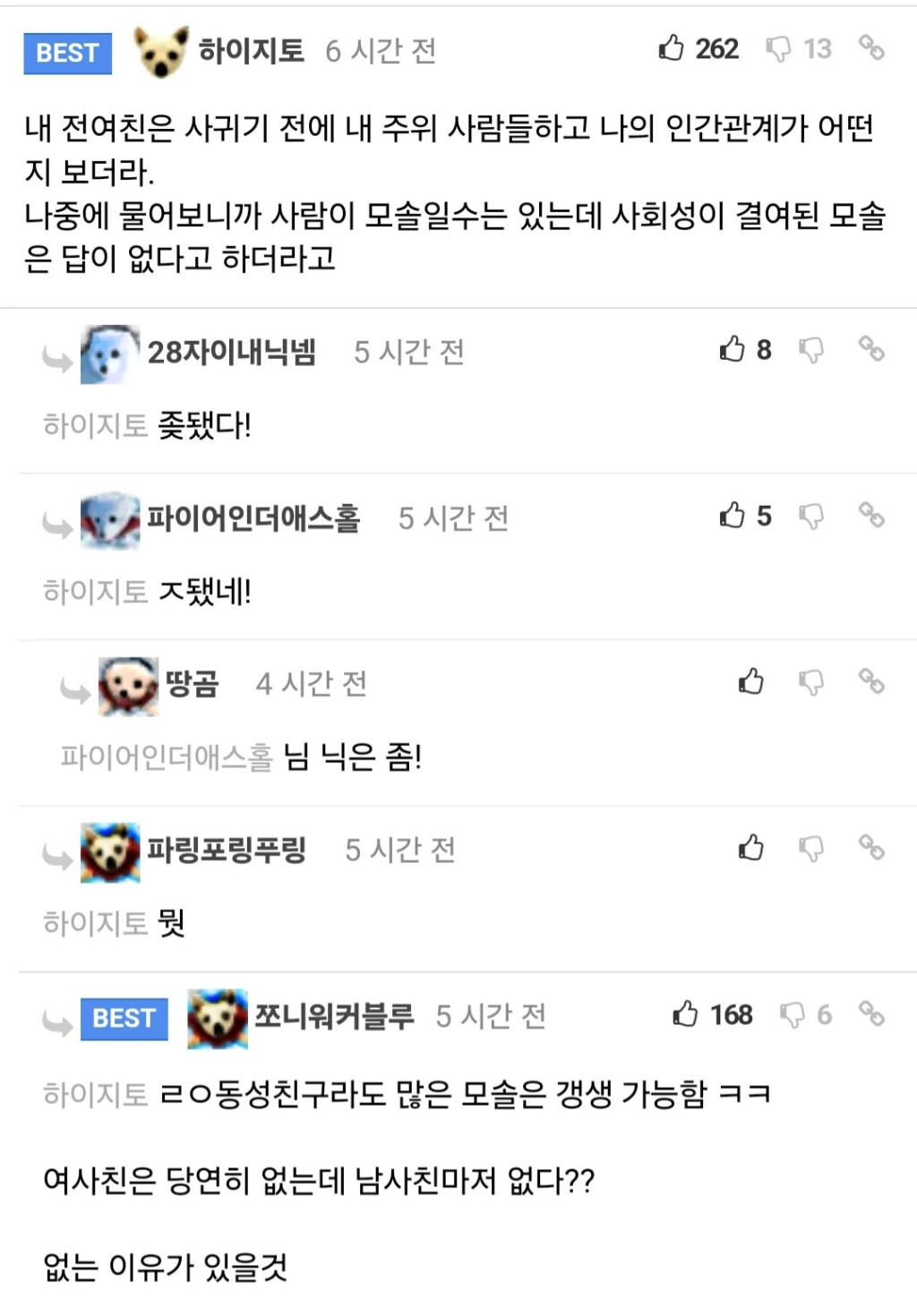모솔 중에서 제일 답이 없는 유형 댓글 0 조회 567 5시간전 작성자 : 드가쥬아 좋아요 팔로우 게시글 보기 드가쥬아님의 최신 글 10.15 양가 도움 없이 사랑만으로 결혼 했을 때 경제적 상황 후기 10.15 모솔 중에서 제일 답이 없는 유형 10.15 축구선수 이동경 부인 근황 10.15 현재 민심 나락간 정찬성 ㄷㄷ 10.15 LPL의 영원한 숙적, 불사대마왕 페이커 10.15 캄보디아 범죄조직 중국 프린스그룹 천즈회장 근황 뜸 10.15 어느 여초커뮤의 이하늘 여론 변화 10.15 Ai가 만들어준 귀멸의칼날 무한열차 1호선 10.15 신곡 컴백한 설윤 최근 폼 10.15 다이어트 시작한다던 이원일 셰프 근황