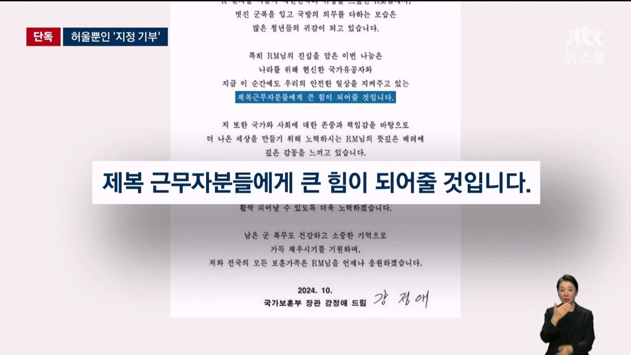 기부받은 돈 10억이 어디쓴지 모른다는 국가보훈부 댓글 0 조회 563 10.15 21:06 작성자 : 가비슈포댄서 좋아요 팔로우 게시글 보기 RM이 제복근무자를 위해 써달라며 1억 기부 하지만 어디 쓰였는지 모른다는 국가보훈부 시행령 개정으로 지정기부 근거를 마련했다고 하지만 실제 작동하는 건 아님 수기관리해서 기부금 내역 알 수 가 없다 가비슈포댄서님의 최신 글 10.15 캄보디아 조직 "엑소더스"…"구조 더 어려워질듯" 10.15 솔로가수 규빈 3rd Single <cappuccino> 스케줄러 10.15 얘는 진짜 국적이 중국인거 빼면 완벽함 ㅇㅇ 10.15 은근히 가슴 큰 나띠 10.15 안무가 조금 선정적이 걸그룹 ㅗㅜㅑ 10.15 이런 여자랑 결혼하면 남자는 후회안하지 10.15 장원영 뼈만 앙상했던 시절 10.15 테일러 스위프트 팬들이 케데헌 골든에 빡친 이유 10.15 순대를 안좋아하는 엔믹스 배이 10.15 싱글벙글 지명수배자 능지 레전드