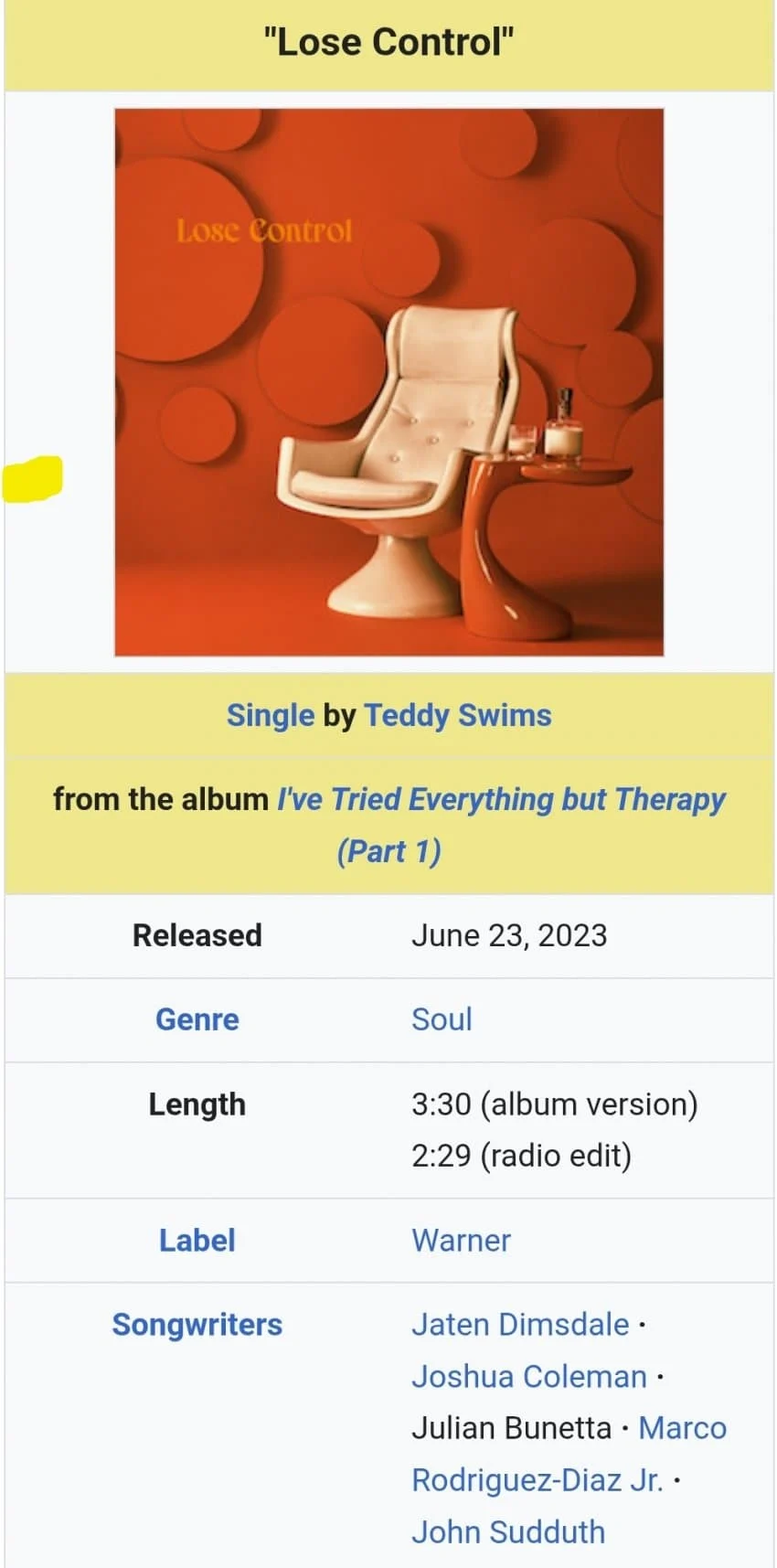 테디 스윔스가 부른 곡인데