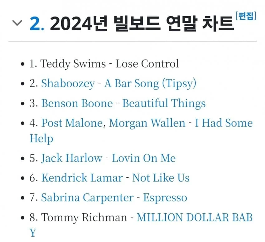 2024년 빌보드 연말차트 1위