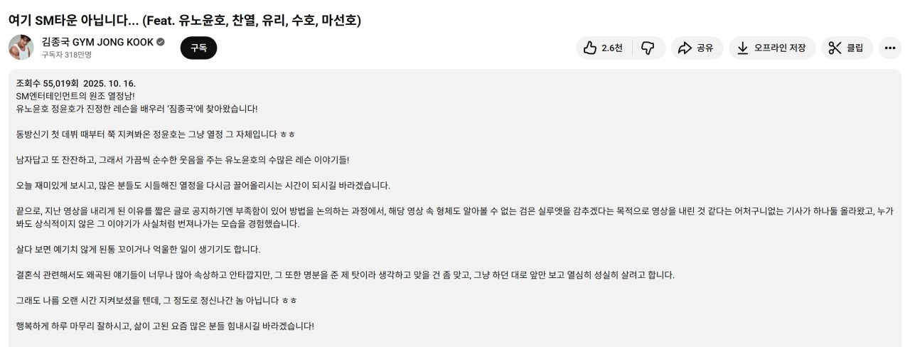 어제 올라온 유튜브 영상 소개글에 추가한 입장문
