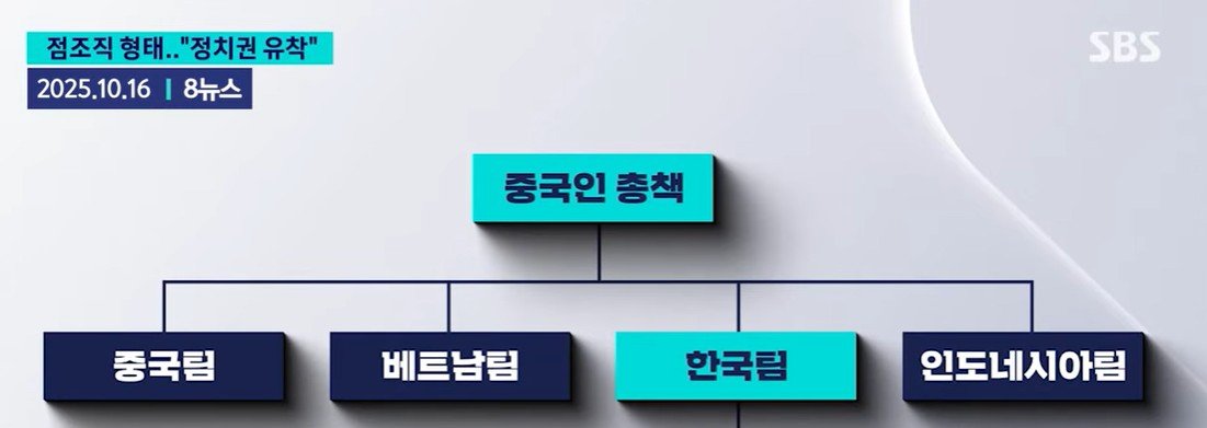 캄보디아 중국 사기조직 관계도 (한국팀 포함)