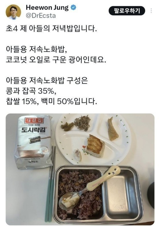 "아빠가 의사인 초등학생의 저녁밥" 짤의 진실