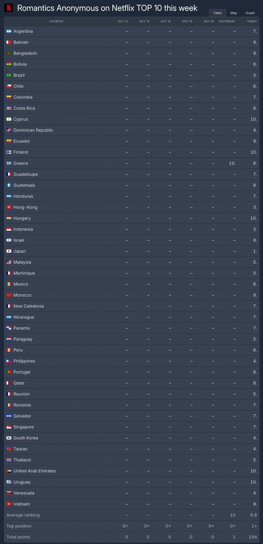 일드 로맨틱 어나니머스 넷플릭스 주간 글로벌 성적