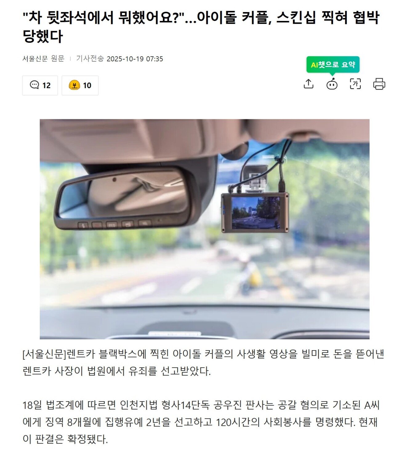렌트카 블박에 스킨십 영상 찍혀서 협박당한 아이돌 커플