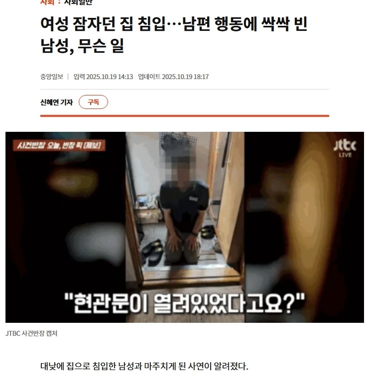 현관문이 열려있었다는 등 횡설수설하다 도둑인데 한번 만 봐달라고 무릎 꿇었다네요.