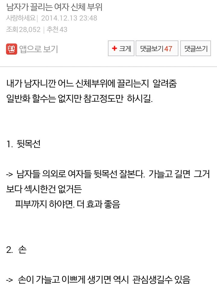 - 10.20 남자가 끌리는 여자 신체 부위