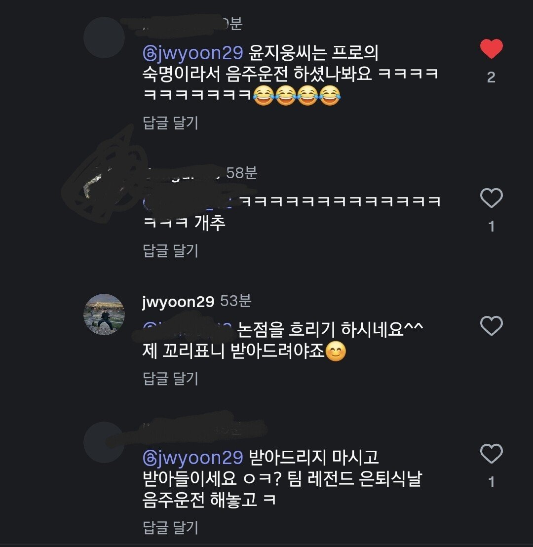 - 10.20 윤지웅 댓글로 팬이랑 싸우는 중