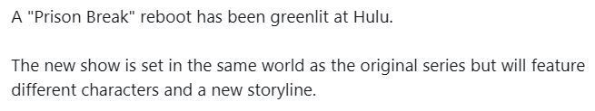 디즈니 자회사 훌루가 '프리즌 브레이크' 리부트 제작을 승인했다고..