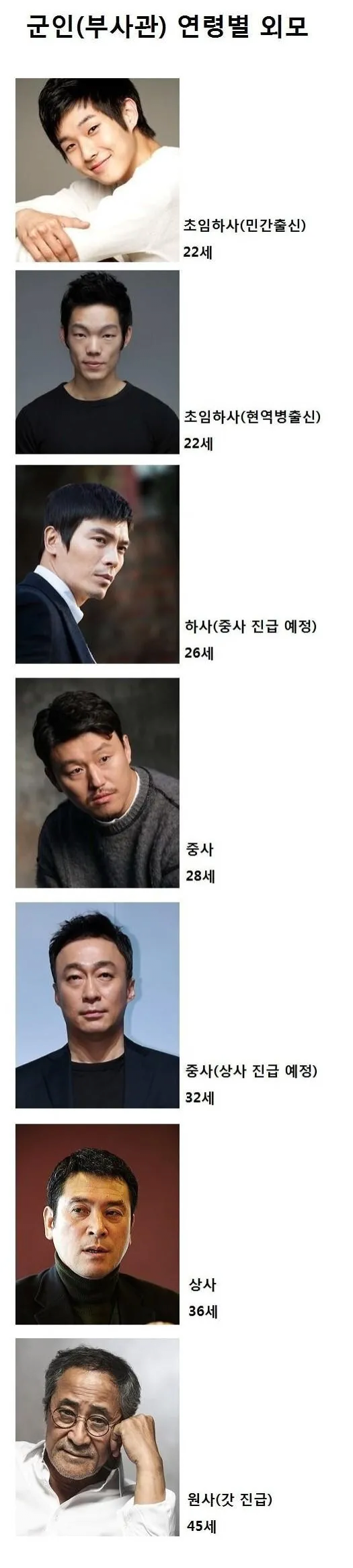 연예인으로 비유해보는 군인 부사관 연령별 외모