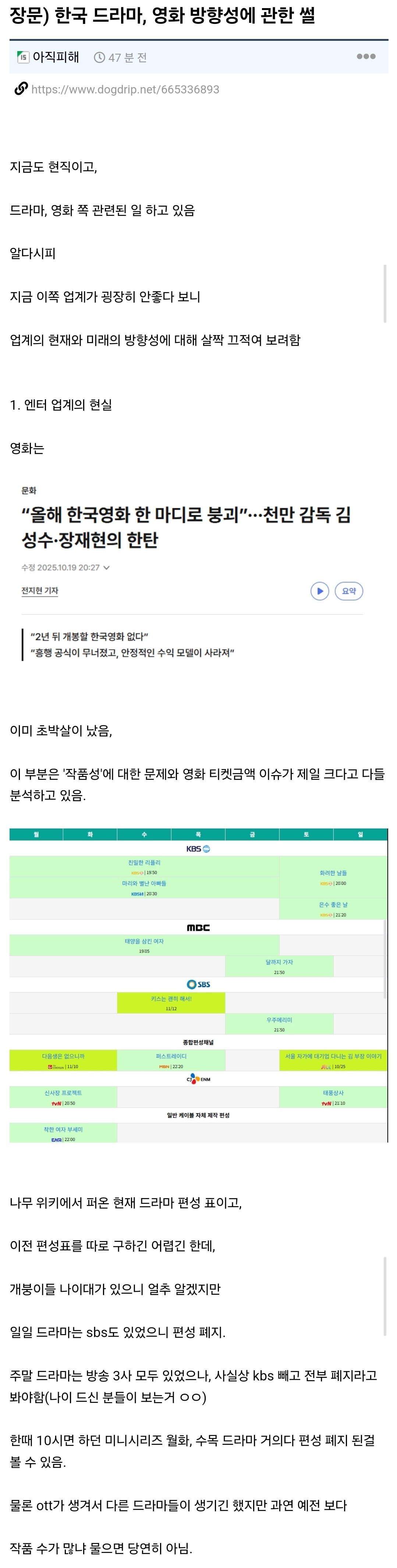 엔터업계 사람이 쓴 한국 드라마, 영화 방향성