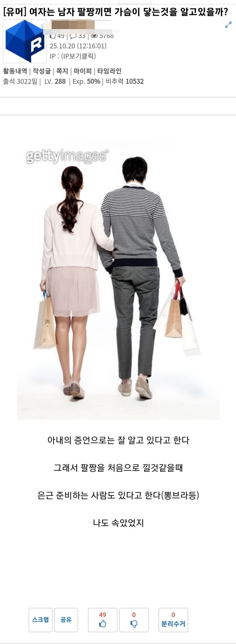 여자는 남자 팔짱끼면 닿는다는걸 알고 있을까