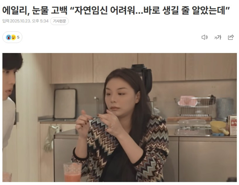 에일리 “자연임신 어려워…바로 생길 줄 알았는데”