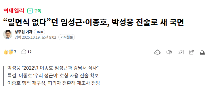 4. 여기서 박성웅이 특검에 출석해 "2022년 서울 강남에서 이종호, 임성근과 함께 밥을 먹었다. 이종호와는 아는 사이였고 그 자리에서 임성근을 처음 봤다"라고 진술