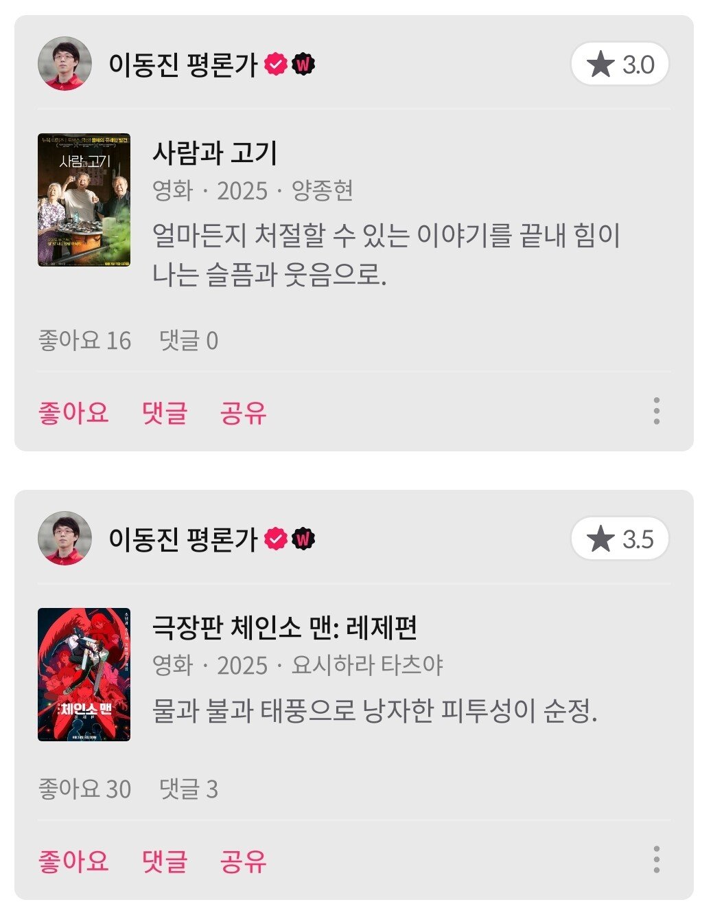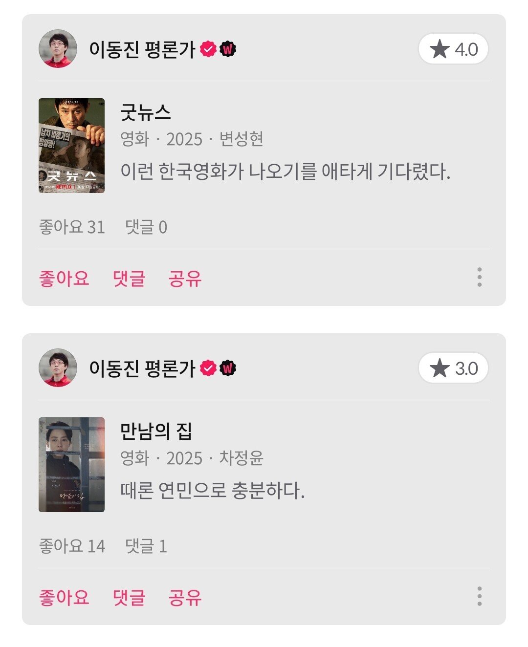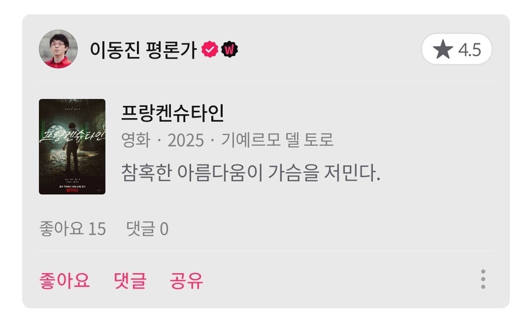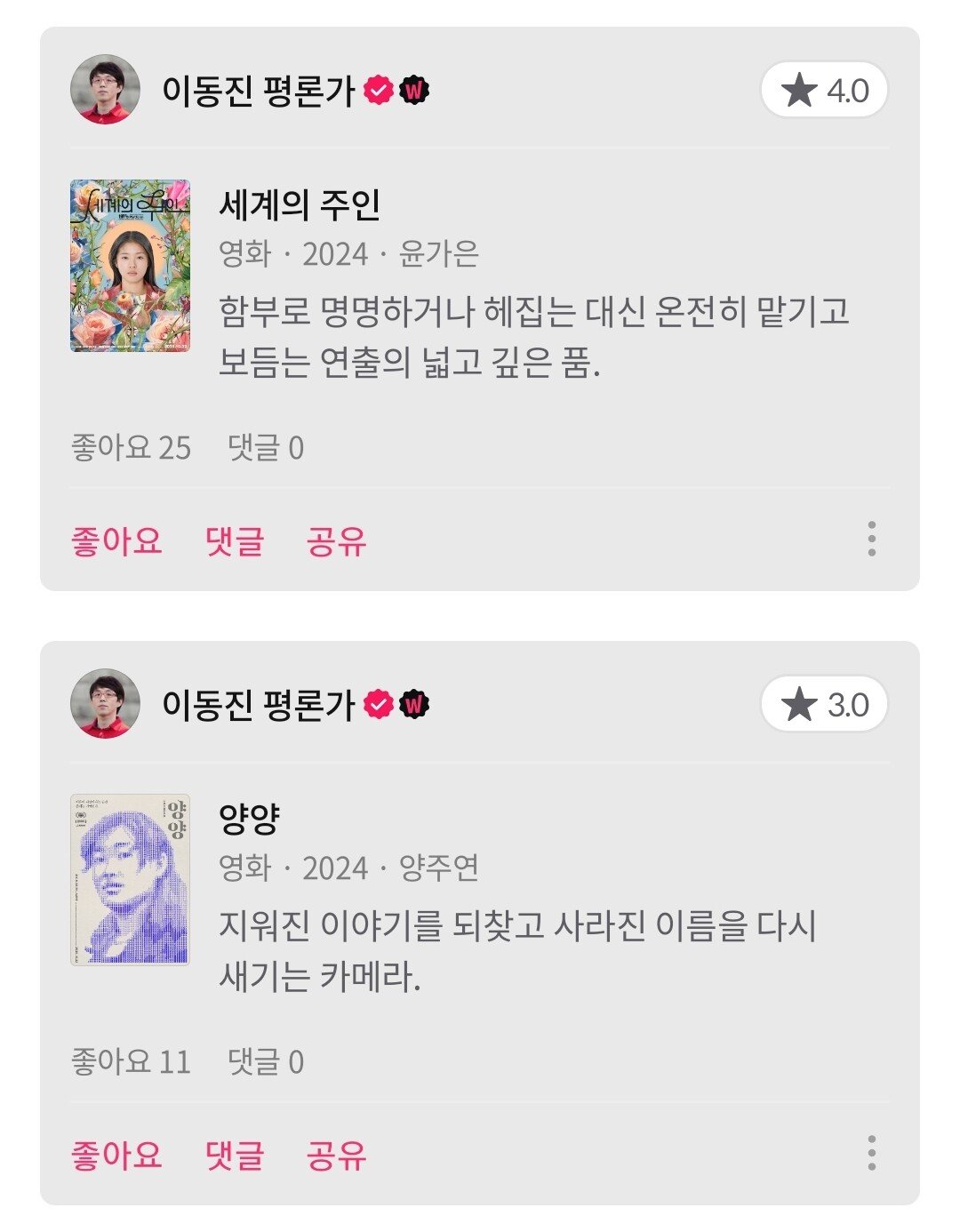 이동진 평론가 금주 한줄평