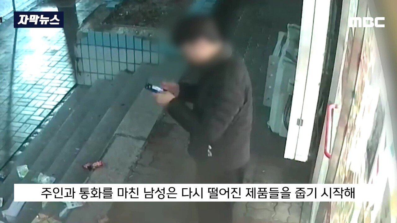 무인점포 때려 부순 문신남과 묵묵히 치운 행인