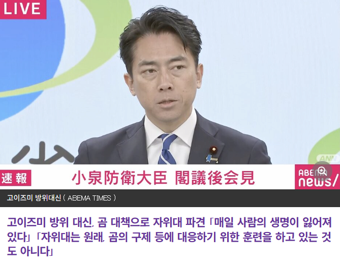 고이즈미 국방 장관 곰 제거에 자위대 파견 거부