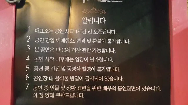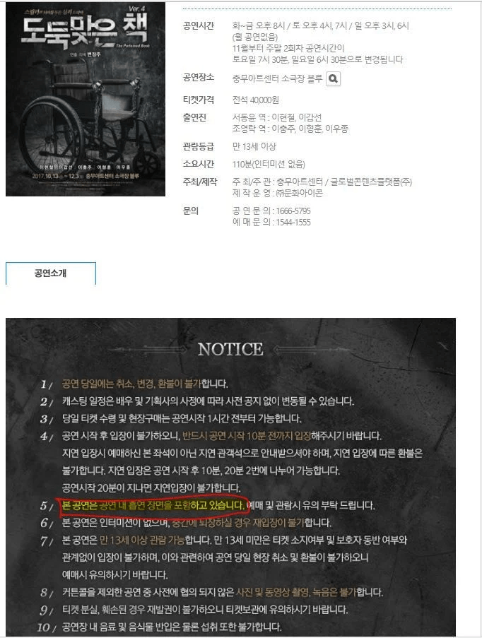 온라인 예매처에도 공연장에도 미리 흡연장면 안내가 되어있음