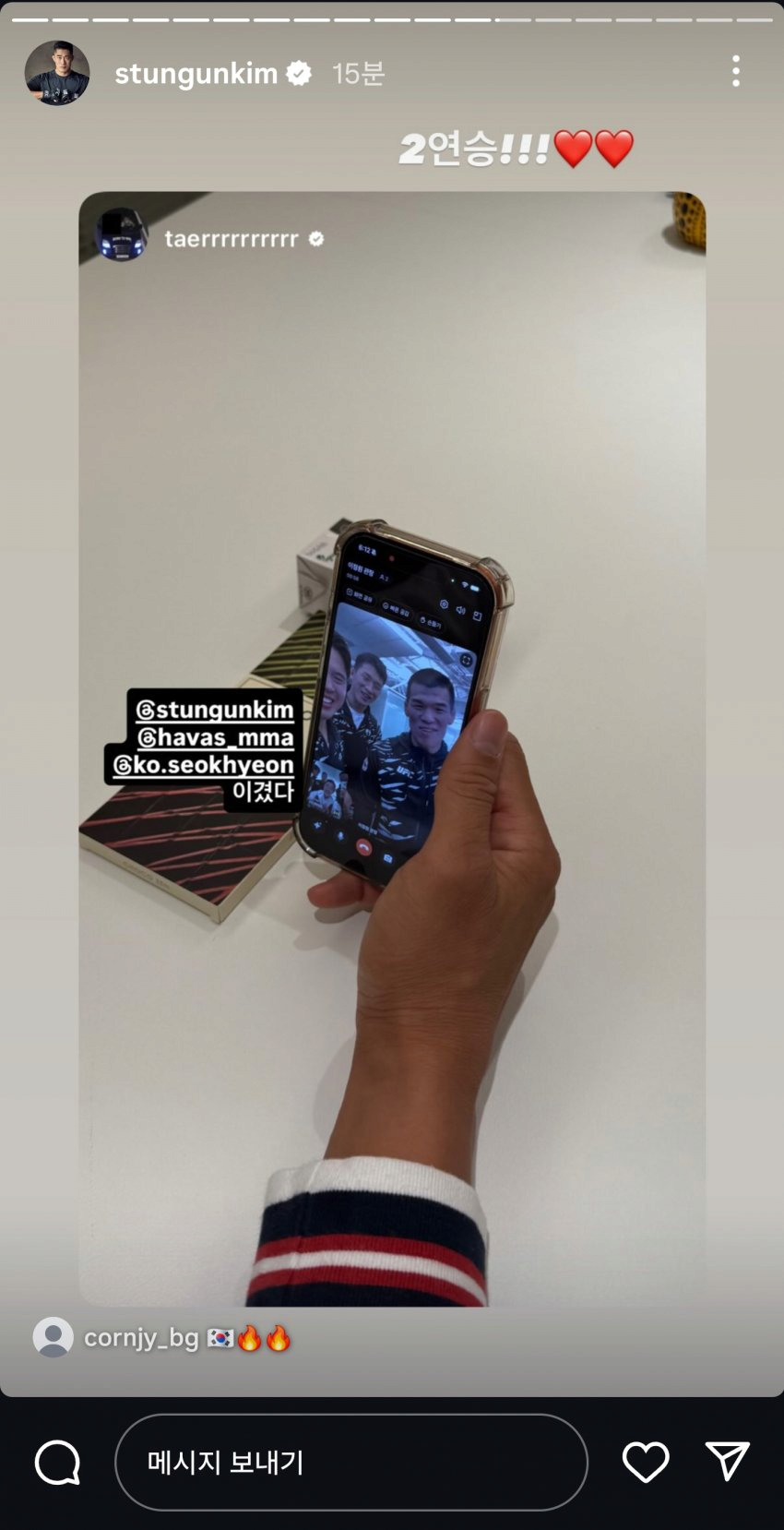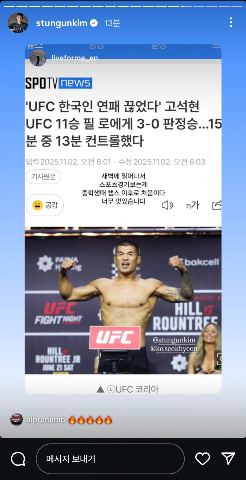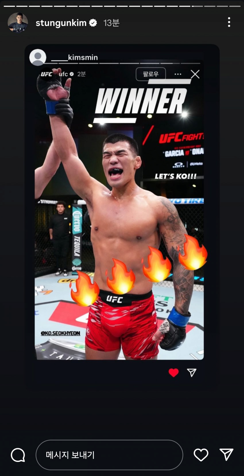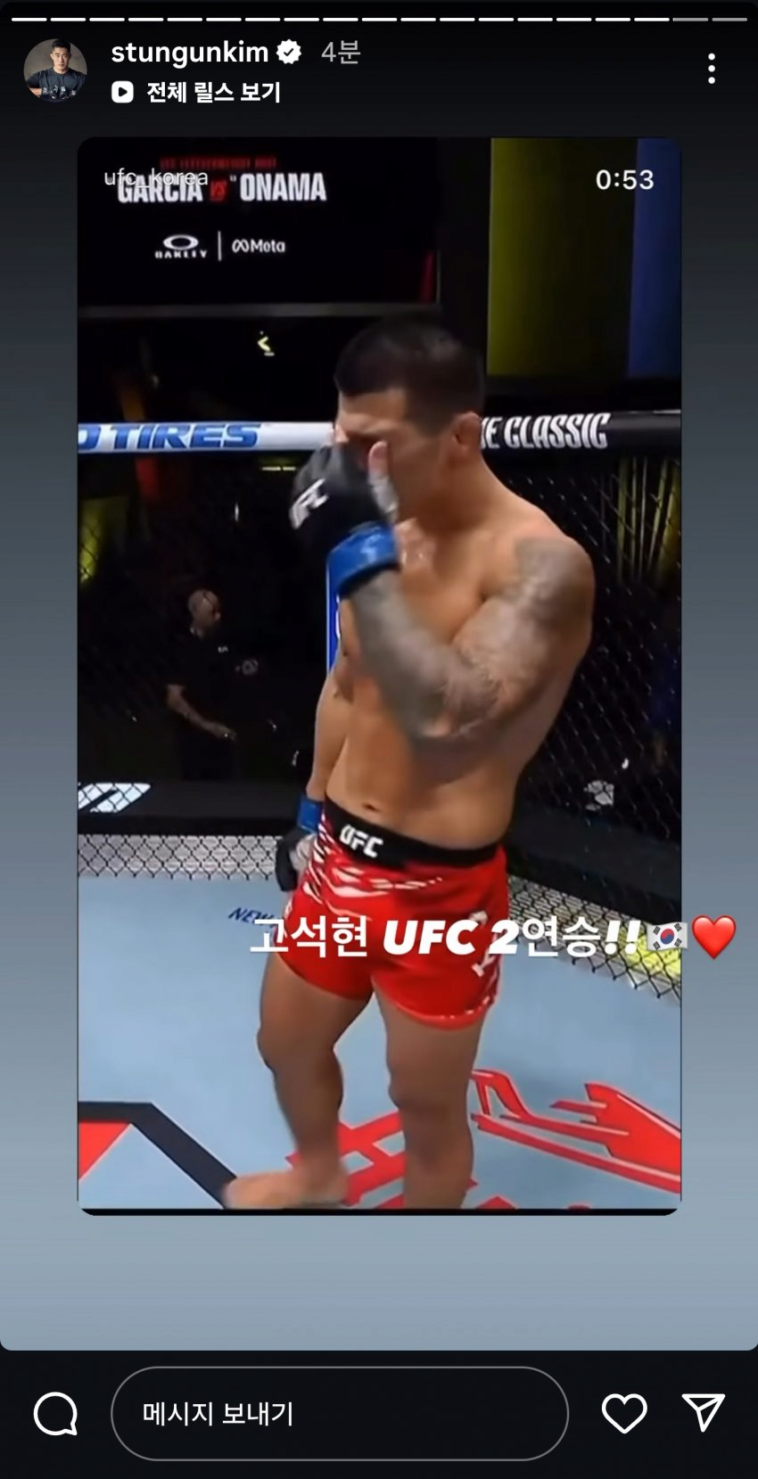 UFC 고석현 승리 후 김동현 인스타 스토리 상황
