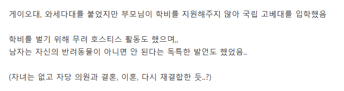 이 인물의 과거의 경력으로 호스티스가 거론되는데