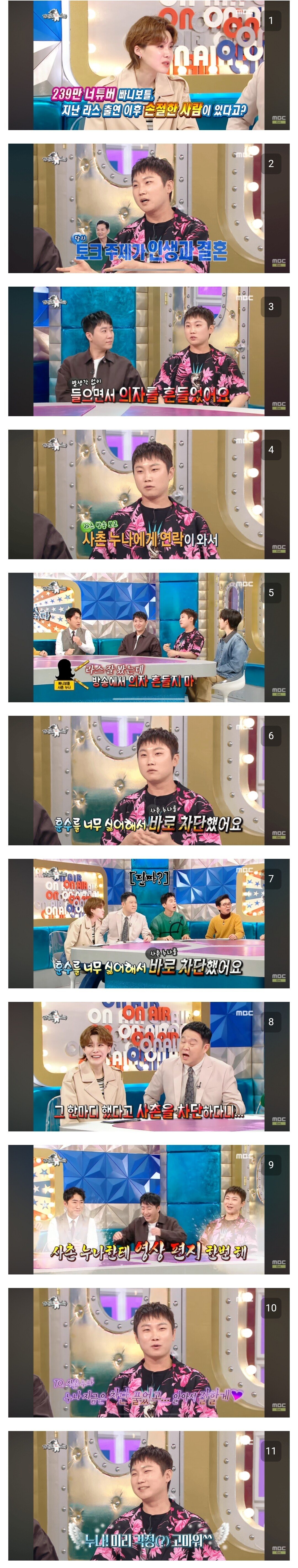 방송 훈수 둔 사촌누나 차단한 빠니보틀