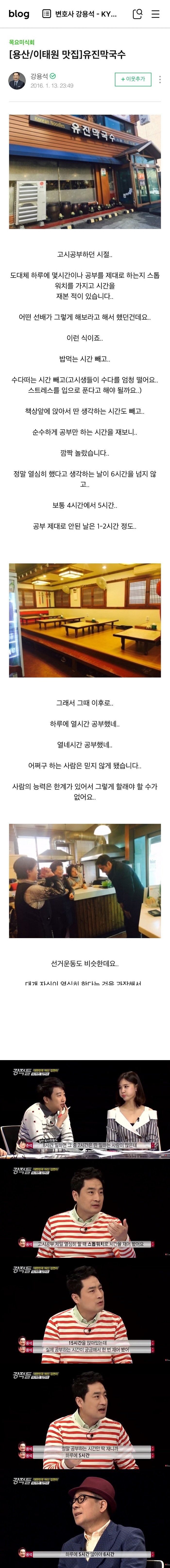 강용석이 고시생 시절 공부시간 재보고 충격받은 이유