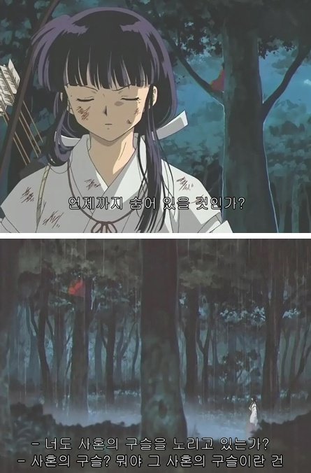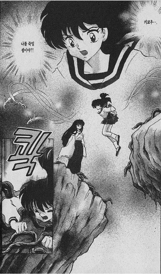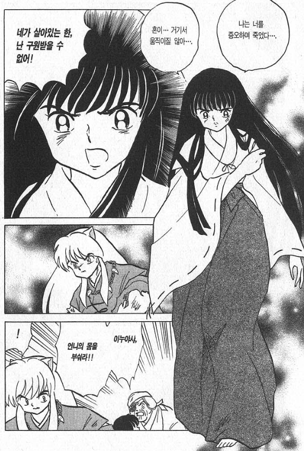 그런 과정에서도 이누야샤를 죽이지 않은 언니의 마음을 알 수 없는 금강의 동생