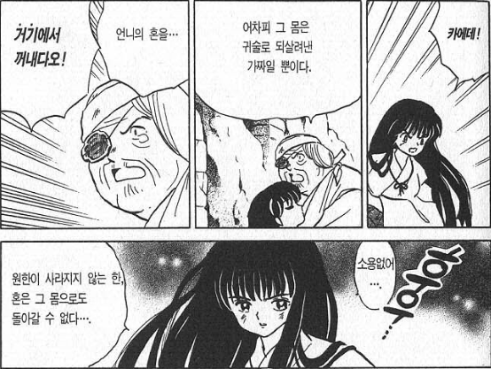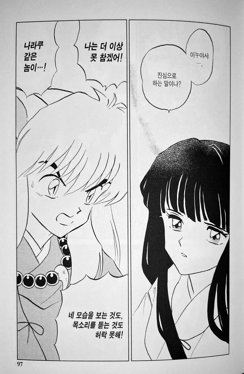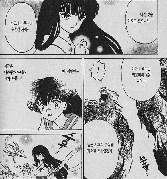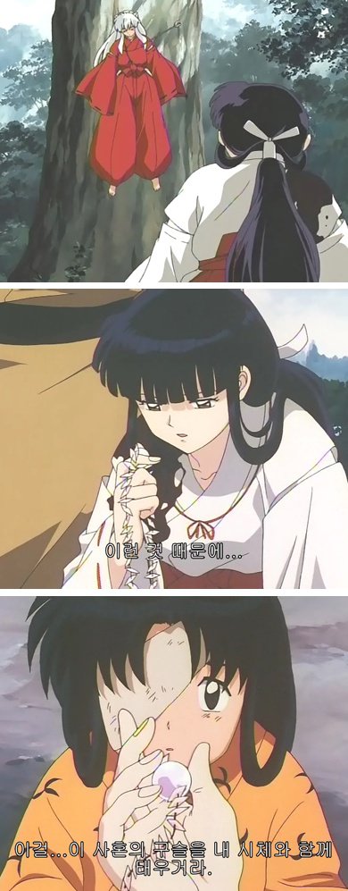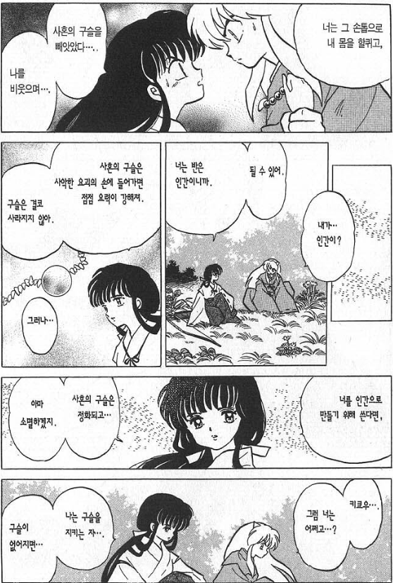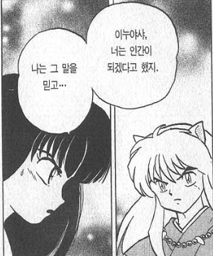 이누야샤를 사랑하게 된 금강은 사혼의 구슬을 세상에서 없애고 평범한 인간이 되어 같이 살자고 제안