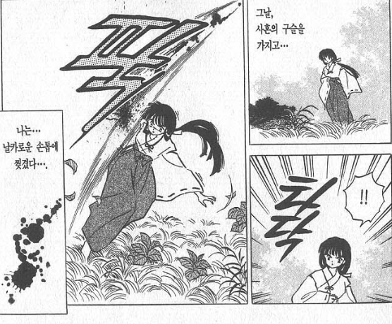 그리고 어느날 이누야사가 사혼의 구슬의 비밀을 알고 빼앗으러 옴