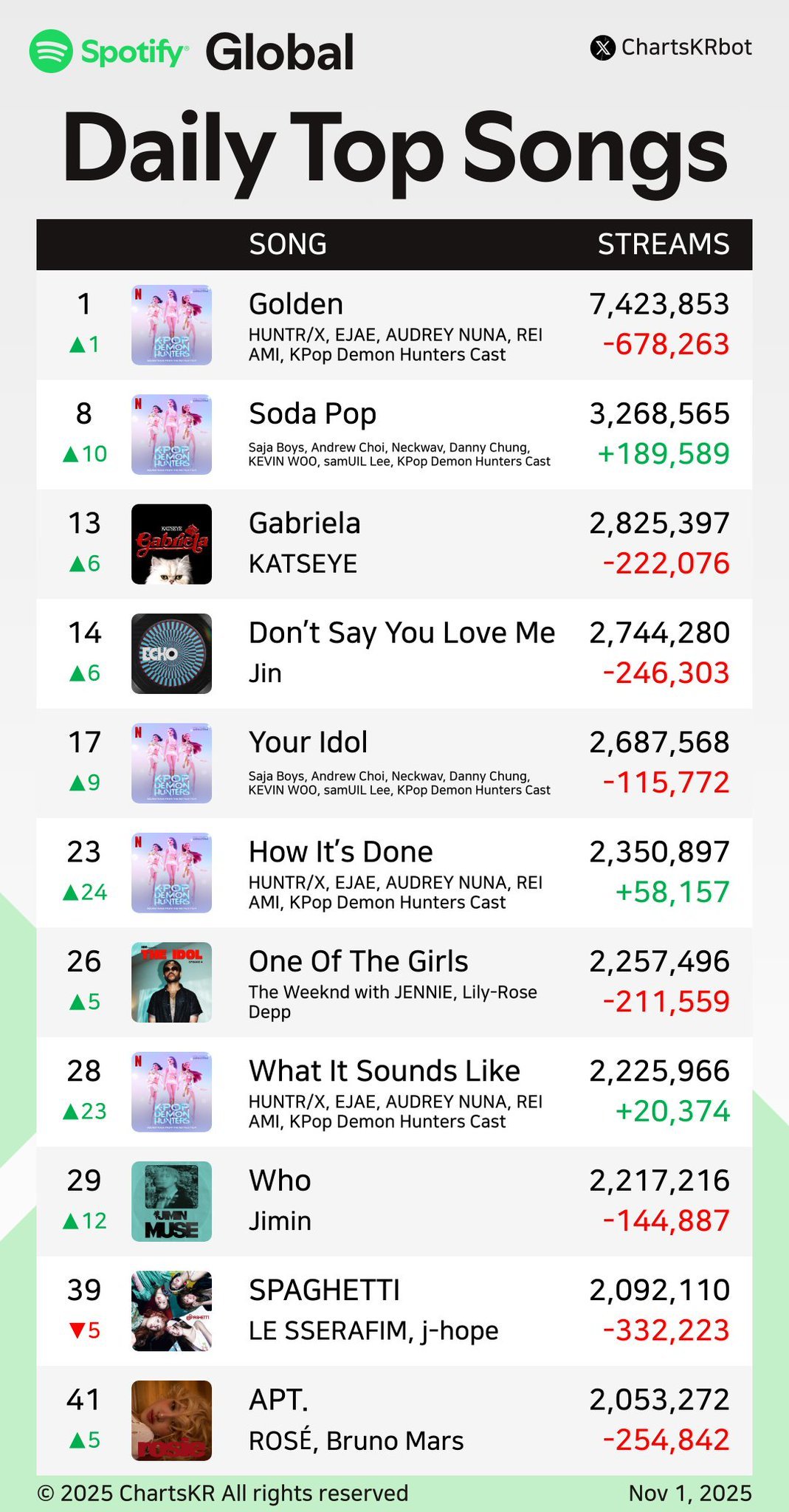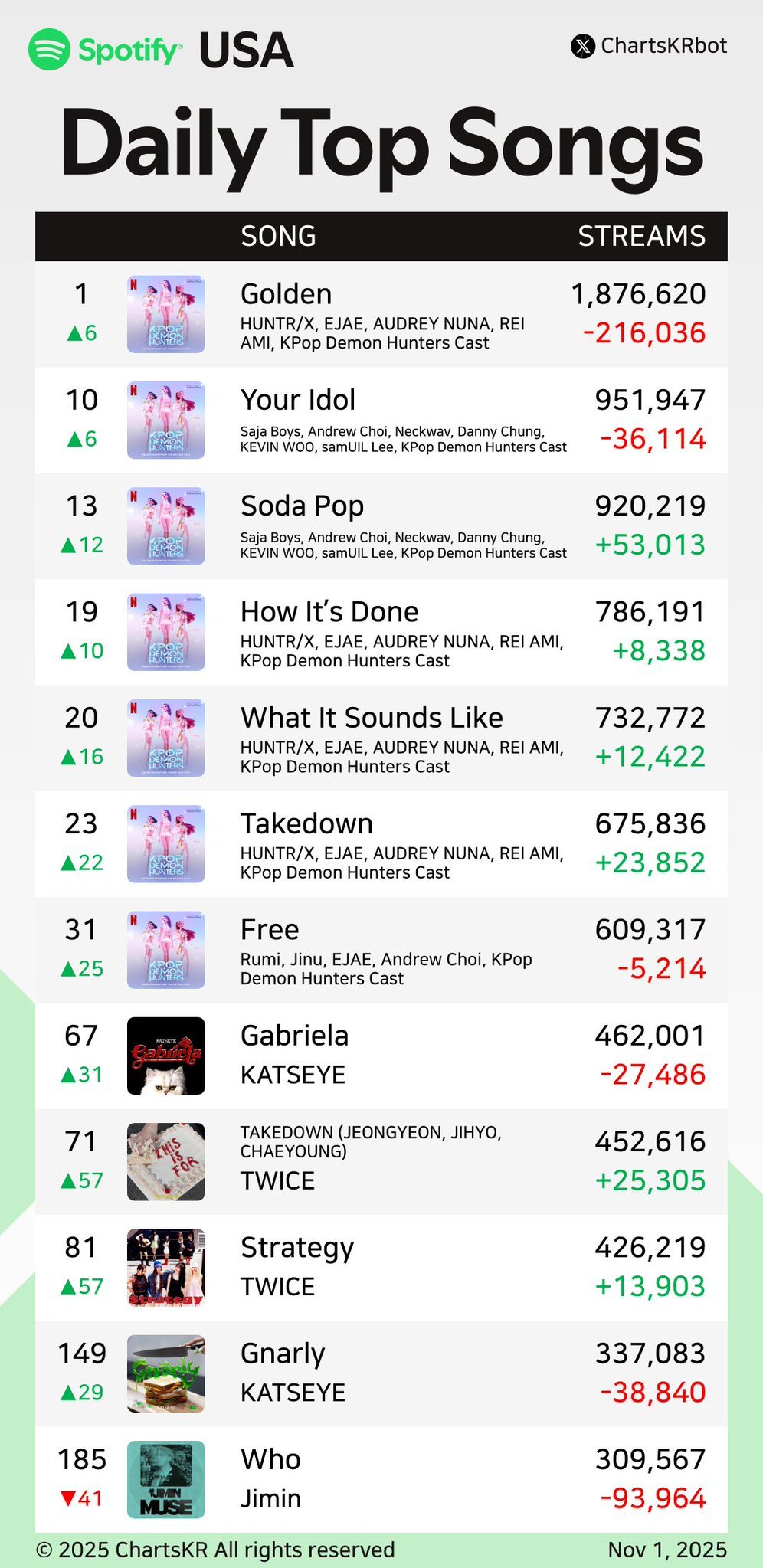 오늘자 테일러 1위 빼앗은 케데헌 골든