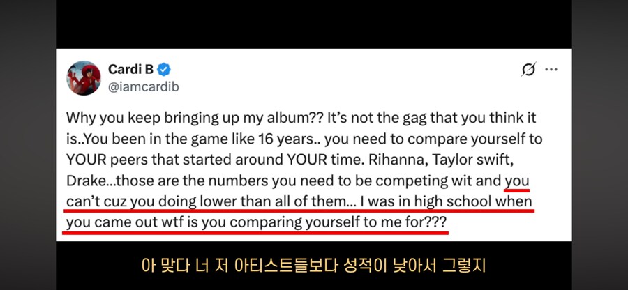 카디비의 팩폭이 너무 쎘던 순간