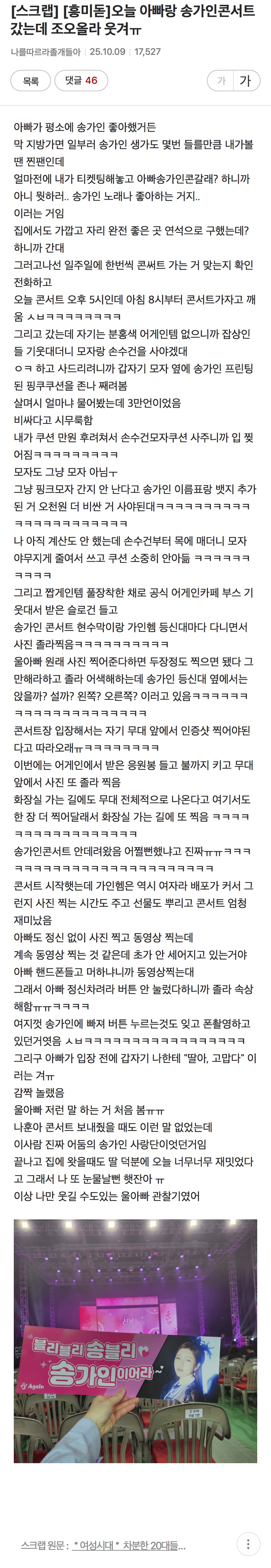 오늘 아빠랑 송가인 콘서트 갔는데 조오올라 웃겨