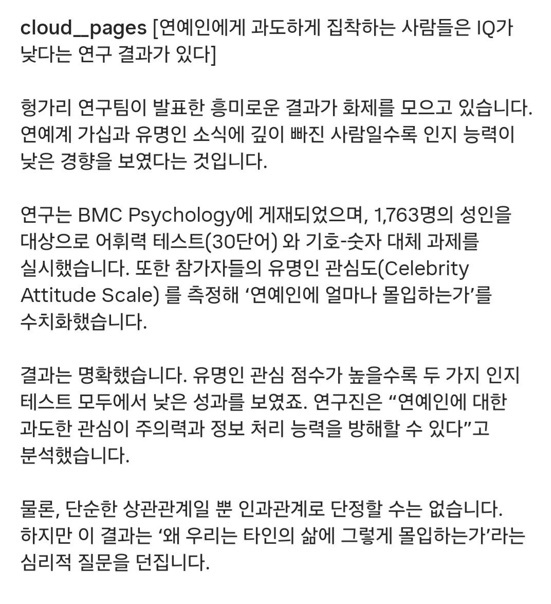 연예인에 집착할수록 지능이 떨어질 가능성이 높다
