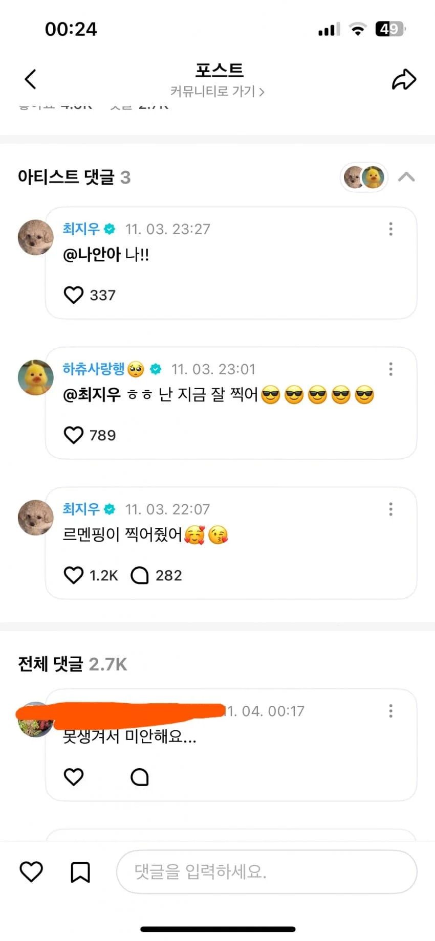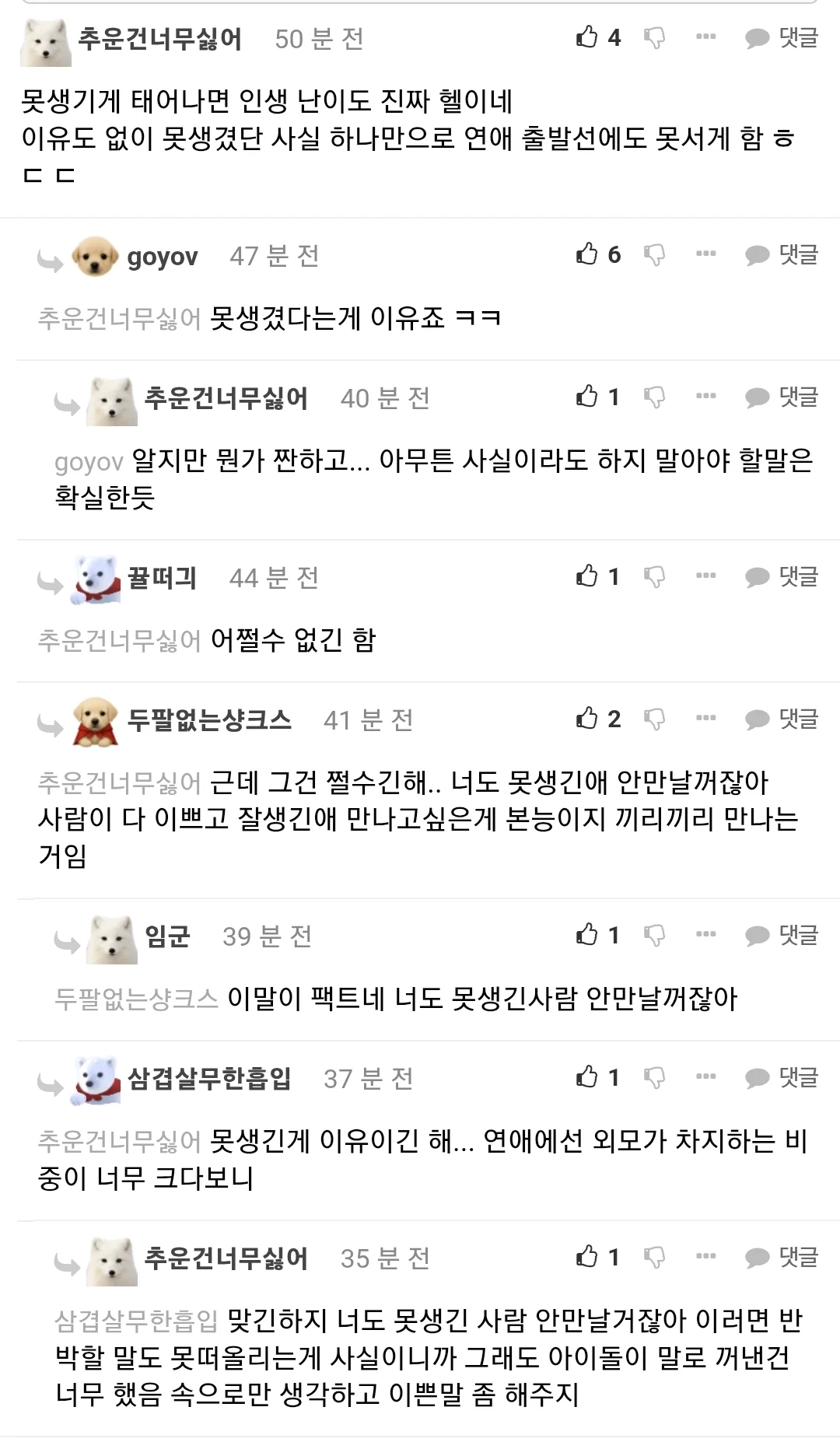 못생긴 남자 만나지 말라는 여돌 포스트 댓글 근황