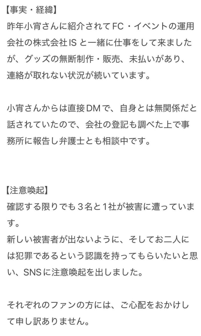 8. 나나세 아리스 또한 IS 회사가 연락두절이며 이에 대해 변호사랑 이야기 중이라고 함
