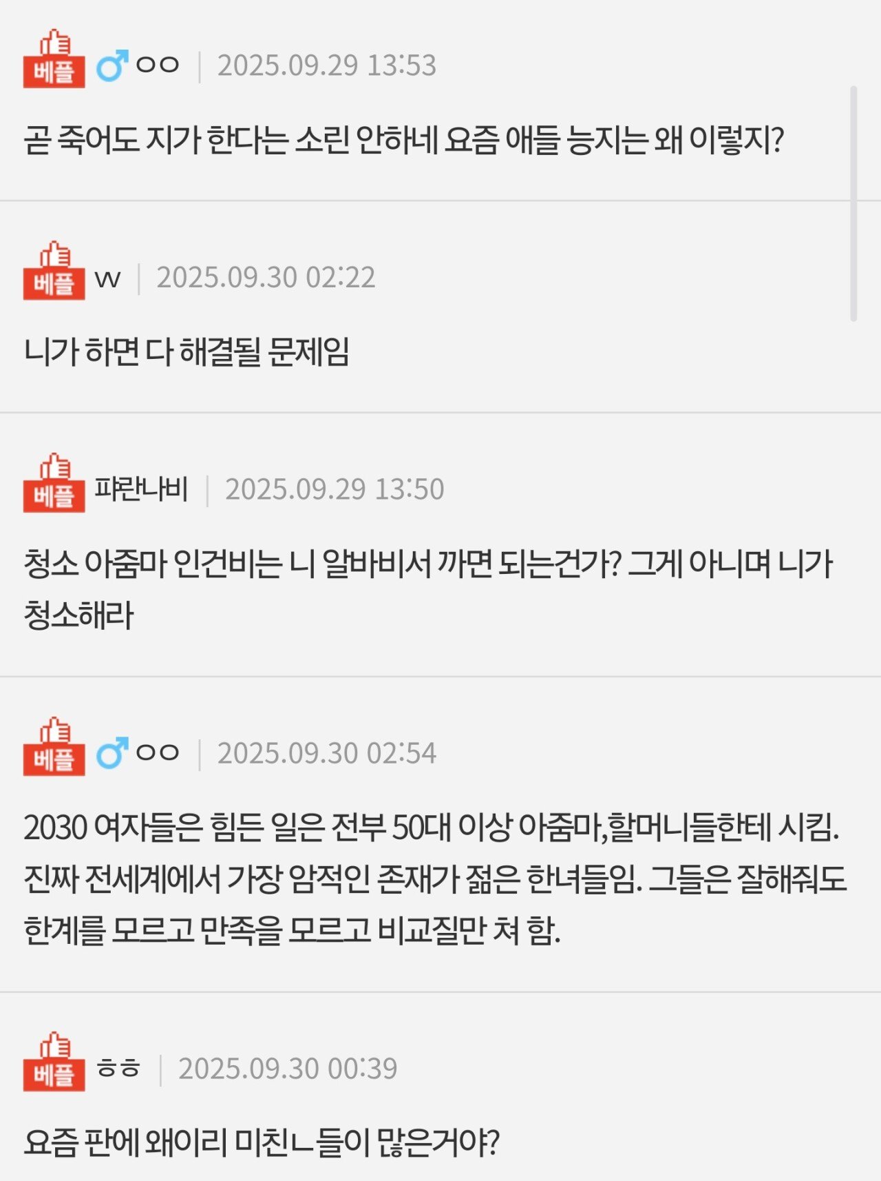 네이트판) 술집 여자화장실을 남자가 청소해도 되나요? 댓글 0 조회 575 10.01 21:14 작성자 : 가자가자가자고 좋아요 팔로우 게시글 보기 맘에 안들면 니가 좀 해라 ㅋㅋ 가자가자가자고님의 최신 글 10.03 63빌딩 계단 오르기 대회 남녀 최고 기록 수준 10.03 2044년 추석 연휴까지 꼭 살아야 하는 이유 10.03 한국화 되고 있다는 일본 여고생 교복 근황 10.03 호주에 살면 흔하게 볼 수 있다는 모습 ㄷㄷ 10.03 용산의 미래 모습 ㄷㄷㄷ 10.03 친구와 절대로 같이 하면 안 되는 3가지 10.02 돈 진짜 존나 많이 깨지는 취미 3대장 10.02 권은비, 일본 공연 꼭노 영상 10.02 7일간 외모에 모든 걸 쏟아부은 남자의 최후 10.02 전문가가 권장하는 추석 한끼 식사량