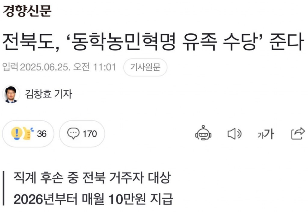 동학농민운동 참여자 유족에 매월 10만원 지급한다는 전라도 댓글 0 조회 515 10.01 20:24 작성자 : 개장수11 좋아요 팔로우 게시글 보기 전북도, ‘동학농민혁명 유족 수당’ 준다 - 경향신문 개장수11님의 최신 글 10.03 63빌딩 계단 오르기 대회 남녀 최고 기록 수준 10.03 2044년 추석 연휴까지 꼭 살아야 하는 이유 10.03 한국화 되고 있다는 일본 여고생 교복 근황 10.03 호주에 살면 흔하게 볼 수 있다는 모습 ㄷㄷ 10.03 용산의 미래 모습 ㄷㄷㄷ 10.03 친구와 절대로 같이 하면 안 되는 3가지 10.02 돈 진짜 존나 많이 깨지는 취미 3대장 10.02 권은비, 일본 공연 꼭노 영상 10.02 7일간 외모에 모든 걸 쏟아부은 남자의 최후 10.02 전문가가 권장하는 추석 한끼 식사량