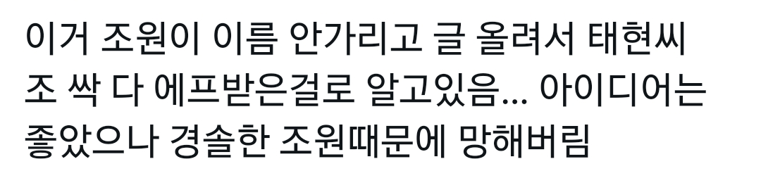 단톡방 S급 과제헌터의 결말 댓글 0 조회 537 10.10 15:57 작성자 : 관셈보살 좋아요 팔로우 게시글 보기 어떤 바보때문에 올F엔딩.... 관셈보살님의 최신 글 10.10 배터리 문제를 해결한 스마트폰 10.11 권은비, 일본 공연 꼭노 영상 10.10 한국의 흔한 자리찜 아이템 10.10 잘때 휴대폰 하지말라는 디씨인 10.10 노벨평화상을 수상한 마리아 코리나 마차도는 누구인가? 10.10 오늘 총쏘고 테이저건쏘고 난리남 10.10 슈카코믹스 대황니니의 "한미반도체" 근황 10.10 궁지에 몰린 백종원 연돈볼카츠 근황 10.10 노벨 평화상 사전 유출 의심 정황 10.10 어플 사진 믿고 여자 만나러 감